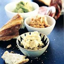 Kör kikärterna med vinäger och olja i en matberedare eller med en handmixer. Blanda röran med den pressade vitlöksklyftan. Smaka av med salt.
