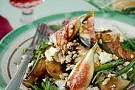 7. Skär kycklingköttet i skivor tvärsöver och toppa med det samt betorna. Smula över osten och garnera med fikon i klyftor samt rostade melonkärnor. Ringla över lite balsamico vid servering.