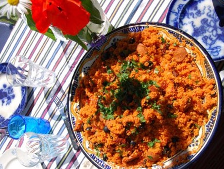 3. I med couscous och oliver. Rör, rör, rör, låt stå i fem minuter. Ät! Gärna med en grönsallad till!