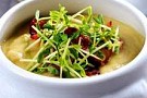 1. Skala och hacka löken. Stek den lätt i oljan i en kastrull. Tillsätt kikärtor, salt och buljong och låt soppan koka upp.