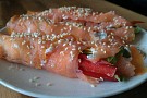Kallrökt lax, fylld med philadelphia ost, paprika & ruccola