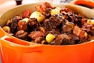 Klassisk Boeuf bourgignon med champinjoner och smålök