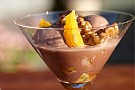 1. Sjud ihop äggulorna, sockret och kakaon i ett vattenbad. Värm upp gräddmjölken, utan att koka, med den delade vaniljstången.