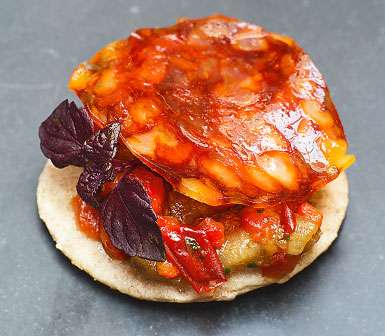 Fördela tapenaden på kexen. Toppa med chorizon.