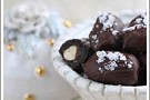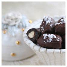 Chokladdoppad dadel med hasselnötter och flingsalt