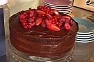 13. Lägg första kakan upp och ned på ett galler, bred över lite av chokladglasyren och lägg på nästa botten (även denna upp och ned).