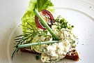 4. Lägg på salladsbladen och en klick gubbröra.