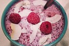 Häll ner hallonen i en bunke och mosa samt rör om så det finfördelas och ej klumpas, häll i chaifröna och rör om så fröna krossar hallonen.