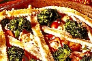 7. Kavla ut restdegen, skär remsor och lägg över. Stick ner lite broccoli och paprika mellan rutorna.