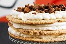 4. Vispa grädden och hacka Daimen. Fördela detta mellan de tre bottnarna.