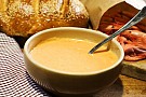 2. Låt soppan koka i 10-15 minuter. Sila sedan bort skal och grönsaker. Red eventuellt soppan något. Salta samt spetsa med armagnac.