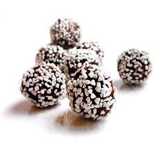 4. Forma till 20 små runda bollar och rulla dem i pärlsocker eller kokosflingor.