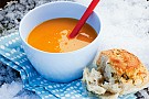 salt och 1 krm svartpeppar.6. Mixa soppan till krämig konsistens.