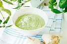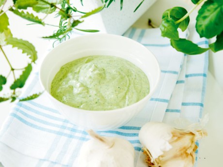 Mixa alla ingredienser med mixerstav till en grön röra.