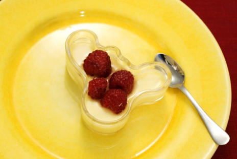 Blötlägg gelatinbladen i rikligt med kallt vatten i 5 minuter. Koka upp grädden med sockret och de hela vaniljstängerna. Lyft upp gelatinbladen utan att krama ur dem och tillsätt i grädden. Rör till en slät smet. Plocka upp vaniljstången och släng. Häll upp smeten i fina glas eller skålar och sätt in i kylen att stelna cirka 3 timmar. Marinera hallonen i flädersaften under tiden och fyll på glasen till bredden med dem strax före serveringen.