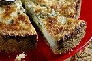 2. Fyllning Rör osten mjuk och vispa i ett ägg i taget med en elvisp. Tillsätt sockret och smula ner hälften av ädelosten. Vispa lite och häll sedan smeten i skalet. Smula i resten av ädelosten.