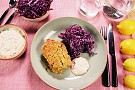 Mixa samman alla ingredienser till bönbiffarna, smaka av med salt och peppar och låt stå i ca 10 minuter. Hacka paprika och persilja till såsen mycket fint. Blanda med yoghurt och smaka av med salt och peppar. Strimla kålen och hacka persiljan. Rör samman yoghurt, citron och senap till en dressing och sväng runt salladen med denna. Smaka av med flingsalt. Forma och stek biffarna i rikligt med olja på varje sida. Servera med sås och sallad.