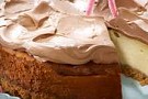 6. Vispa ihop Milda mat & visp 26%, florsocker, O´hoj Chokladsås och ev lite pepparmyntsolja. Spritsa på toppen av kakan. Garnera gärna med riven choklad och färska bär.
