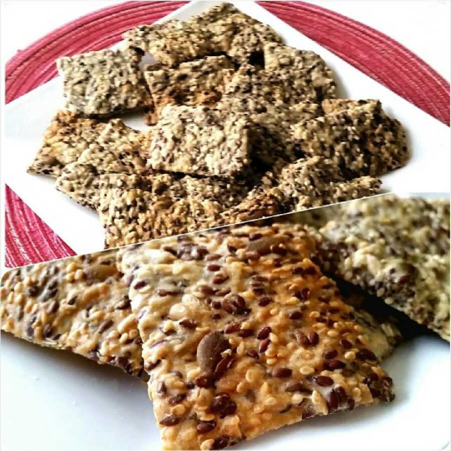 Låt blandningen stå och svälla en stund och häll sedan upp på en plåt med bakplåtspapper. Sprid ut till en tunn kaka över hela plåten med baksidan av en stekspade i metall.