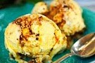 5. Ta upp vaniljstången och skrapa ur fröna, lägg ner dem i ägguleblandningen. Rör med en slickepott ner grädden och sedan ungefär hälften av äggvitan. Vänd sist ner resten av äggvitan med försiktigare rörelser.