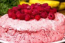 7. Vid servering delas jordgubbarna och lägges ovanpå.