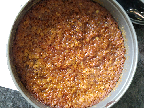 Smält smöret till knäcksmet i en kastrull och rör ner övriga ingredienser. Bred knäcksmeten ovanpå chokladsmeten. Grädda kakan i mitten av ugnen ca 35 min.