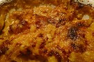 Lägg kyckling, bacon och grönsaker i en ugnsfast form och häll blandningen över.