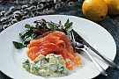 6. Servera rimmad lax kall tillsammans med varm dillstuvad zucchini och lite grönsallad.