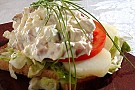 1. Skär den kalla potatisen i skivor. Skiva tomaten. Bre brödskivorna och lägg på sallatsblad. Täck med skivad potatis och över den tomatskivor.