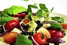 3. Skär kyckling och grönsakerna i bitar. Blanda allt och tillsätt svarta bönor, solrosskott och basilika.