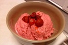 Kör jordgubbarna i mixer lite lagom, blanda ihop allt.