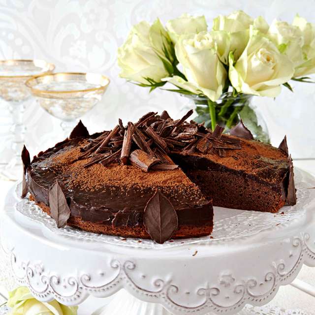 Pudra kakao på toppen av kakan och lägg på hyvlad choklad.