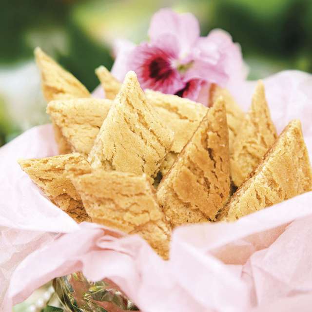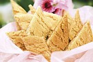 Skär längderna i sneda bitar medan de fortfarande är varma.