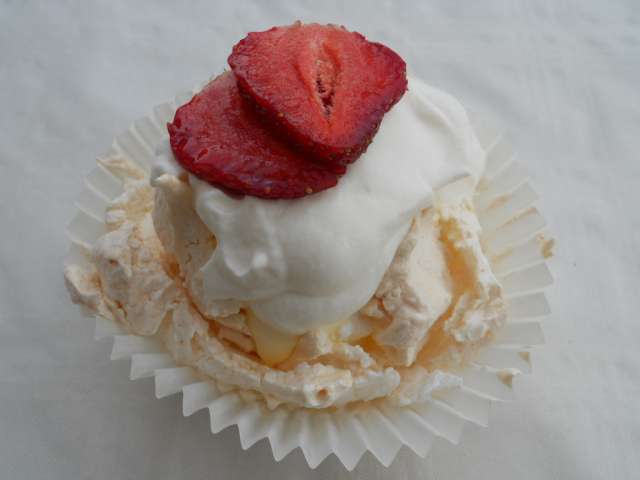 (Sikta ner 2 msk kakao och rör ner det i äggvispet. Om du vill göra marängbakelserna med chokladsmak.)