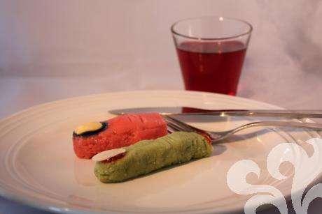 Gör en fördjupning och ta på lite pyntgelé innan du trycker på ett mandelspån som nagel.