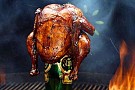 Häll ur halva ölburken och trä kycklingen över ölburken.