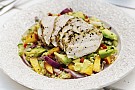 6. Blanda bulgur med grönsaker, avokado, persikor och persilja. Tillsätt 2 msk olja, pressa i 5 msk citronsaft och krydda med 1/2 tsk salt och 2 krm peppar.