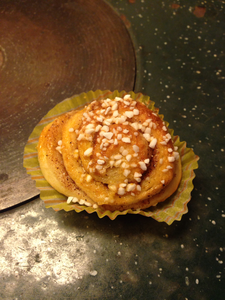 Pensla, pärlsockra och grädda bullarna mitt i ugnen, 5-10 minuter.
