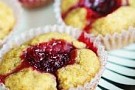 4. Gör en liten grop i varje kula med fingret och lägg i en klick lingonsylt.