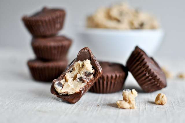 Värm chokladen igen om så behövs i några sekunder i mikron och spritsa sedan varje form ovanpå Cookie Dough.