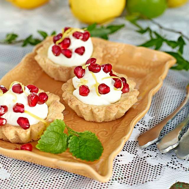 Fyll formarna med moussen och dekorera med granatäppelkärnor och citronskal precis innan serveringen.