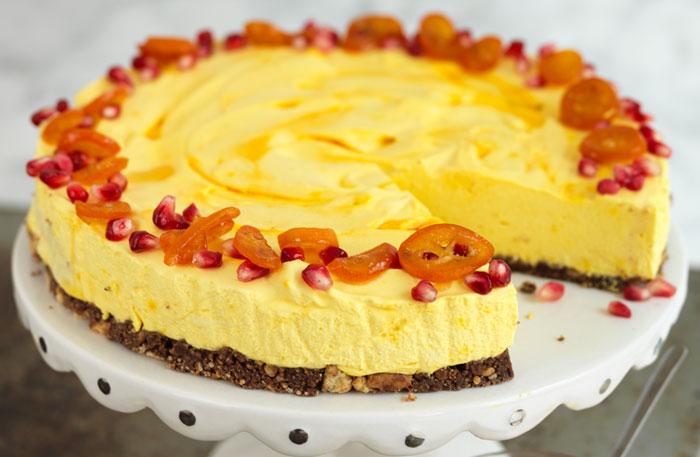 Saffranscheesecake på chokladbotten