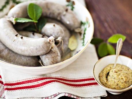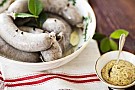 4. Knyt två bomullssnören hårt mellan korvarna med 2–3 cm mellanrum. Klipp isär dem. Upptäcker du luftbubblor i korven kan du sticka hål på dem med en fin nål. Frys in korven eller laga till den direkt.