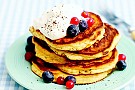 4. Njut pannkakorna varma eller kalla tillsammans med färska bär och en klick grädde.