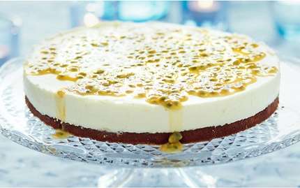 Dela passionsfrukten och skrapa ur fruktköttet.