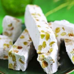 Sätt under tiden in nötterna i ugnen och låt dem värmas och få lite färg. Blanda ner nötterna när smeten är färdigvispad.