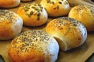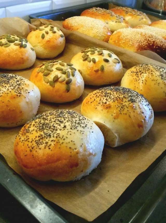 Häll ut degen på lätt mjölat bord. Dela i 12 bitar och forma till runda eller avlånga frallor.