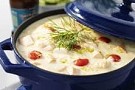 1. Finhacka och fräs i en kastrull, lite matfett, schalottenlök och chili. 2. Tillsätt vatten, fond och saften av en lime. Sjud upp och vispa i yoghurten och red av med lite Maizena utvispat i lite vatten. 3. Smaka av med salt & peppar. 4. Dela tomaterna. Vänd ner fisk och tomater i kastrullen 5. Tag kastrullen från plattan och låt vila 5 min. 6. Riv lite limeskal över fiskgrytan före servering. Servera med ugnsbakade rotfrukter