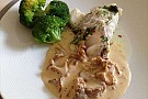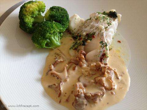 Ugnsbakad torsk med kokt broccoli och kantarellsås