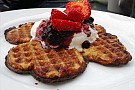Det blir två stora våfflor som mättar en väldigt hungrig person.